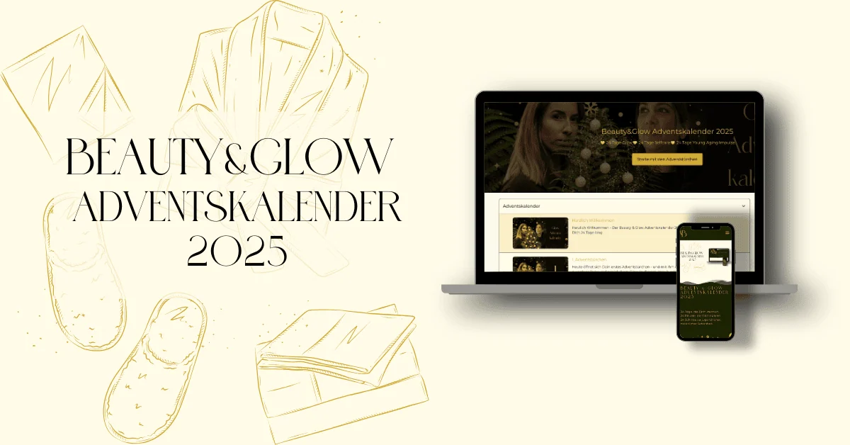 Dieser Kalender ist ein Rückzugsort für Deinen Dezember. Ein sanfter Weg zu mehr Glow, weniger Stress, klareren Konturen und jugendlicherer Ausstrahlung.
